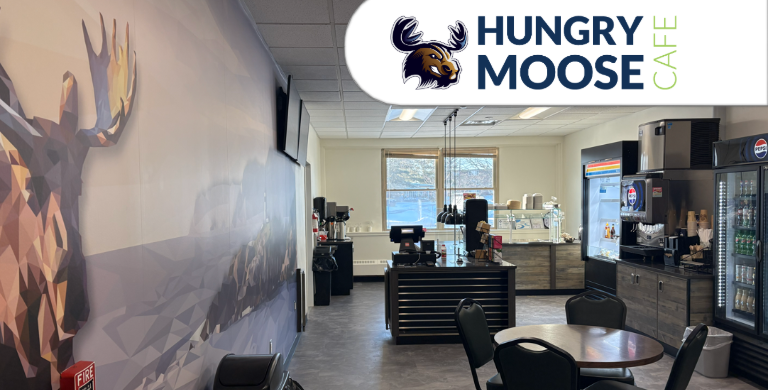 The Hungry Moose Café is open to the UMA Bangor campus community and also to the public! Enjoy hot meals, beverages, coffee, grab and go snacks and more. The UMA Dining team prepares freshly made recipes daily, including International cuisine, grill favorites, pizza, sandwiches, soup, salads, comfort foods and bakery items. UMA Dining is also committed to sustainably sourcing and serving local, seasonal ingredients through our Maine Course program initiatives.